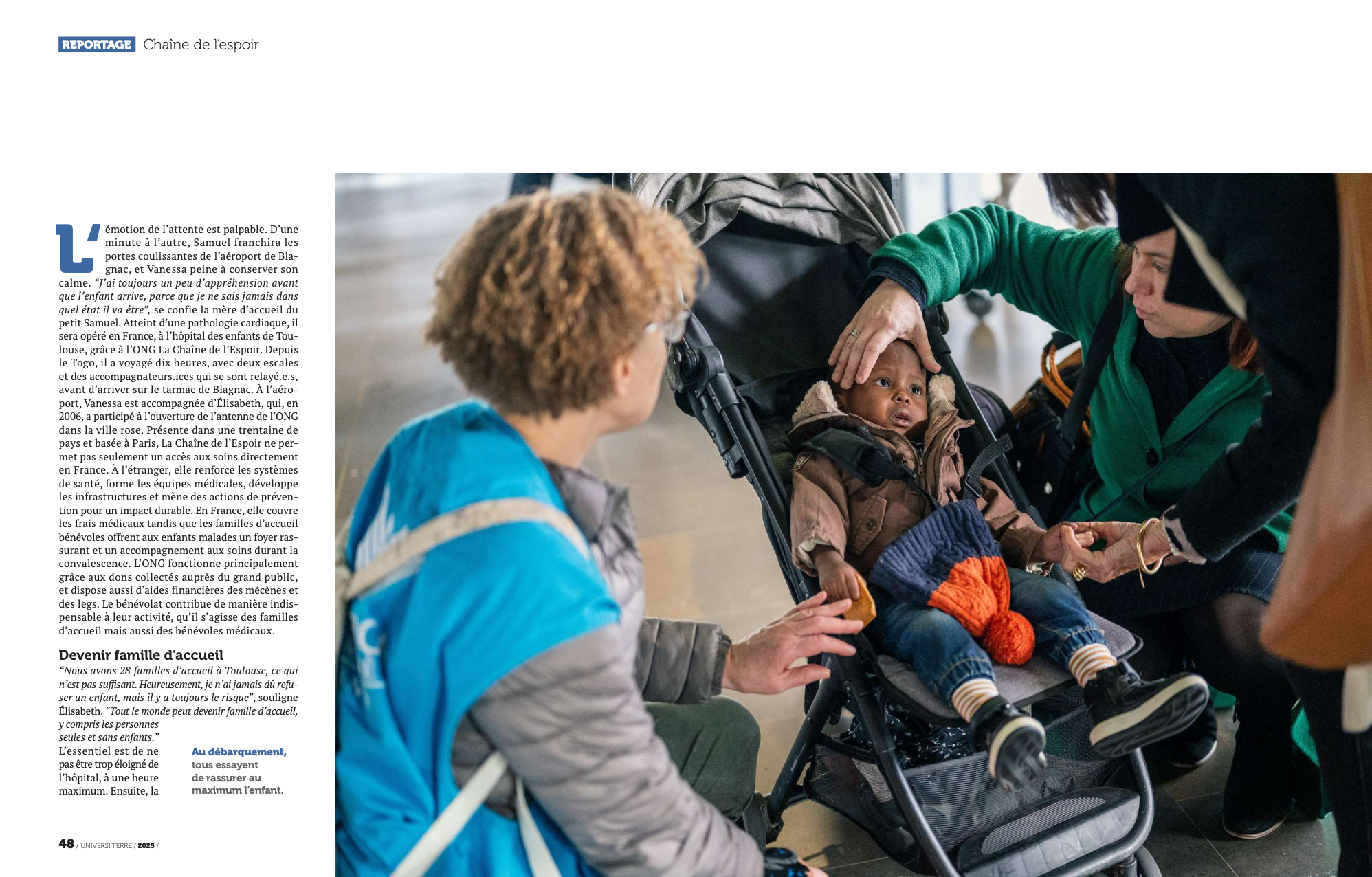 Universi’TERRE magazine est un projet collectif de fin d’études consacré au thème de la santé. Cet article met en lumière les familles d’accueil de l’association La Chaîne de l’Espoir, qui œuvre pour permettre l’hospitalisation d’enfants venant de pays où l’accès aux soins est insuffisant. (photos et textes en collaboration avec Viola Trombetta)